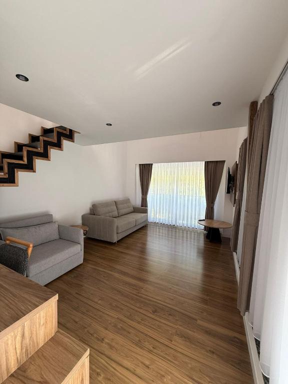 Perfect for families or small groups, our Duplex Studio offers a spacious two-level layout with one full bed and three sofa beds. The room combines comfort with functionality, offering privacy and flexibility for up to 5 guests. Enjoy a stylish design, a private bathroom, and views of the surrounding mountains or garden.